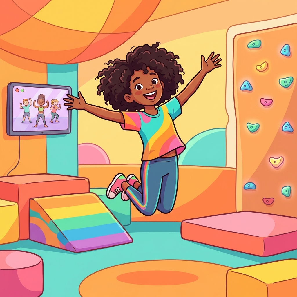 Fun gym and fitness moves get everyone moving! Parents sometimes join in for family-friendly physical activities.