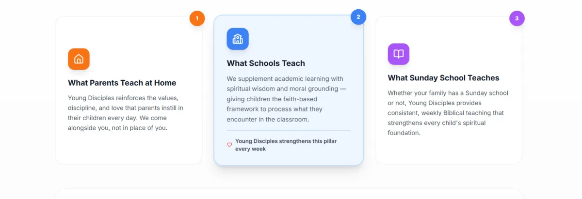 Young Disciples is a free, global online church for ages 5–19 — a supplementary blessing to what parents teach at home, what schools teach, and what Sunday school teaches — strengthening every child and family to handle the world they live in.