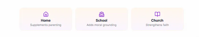 Children share testimonies, ask questions, and discuss how to apply Biblical principles in their schools and homes.