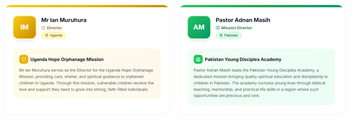 These mission directors are on the ground, changing lives every single day. Your prayers, support, and partnership help us reach more children across Uganda, Pakistan, India, and Nigeria.