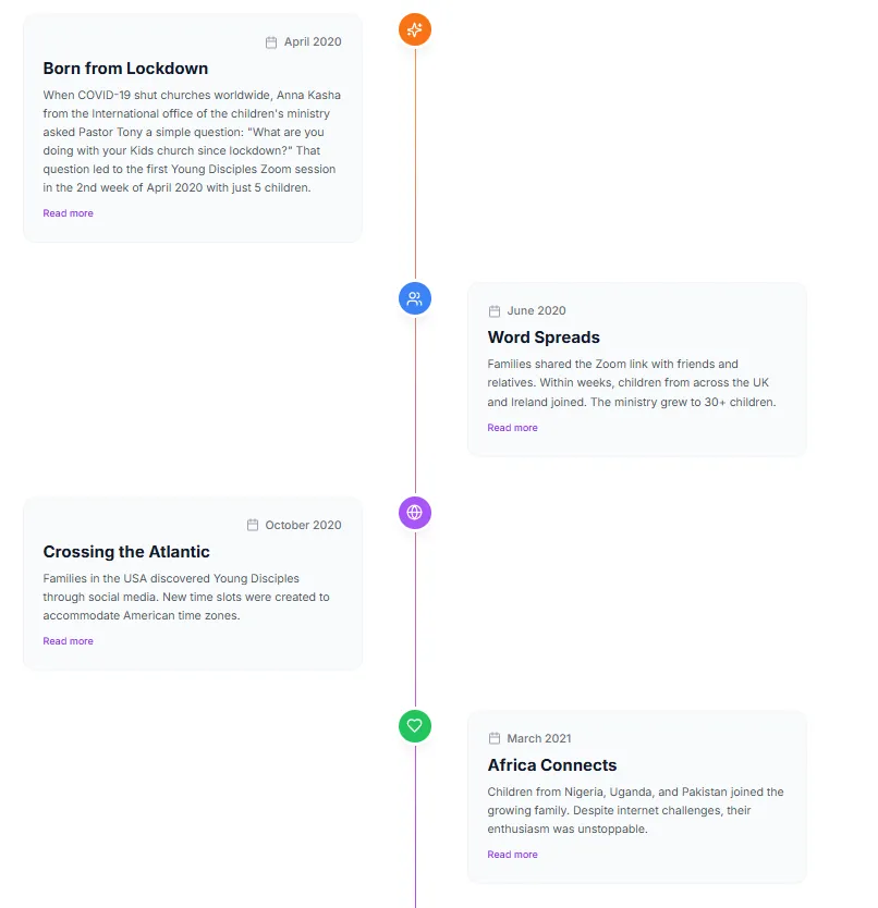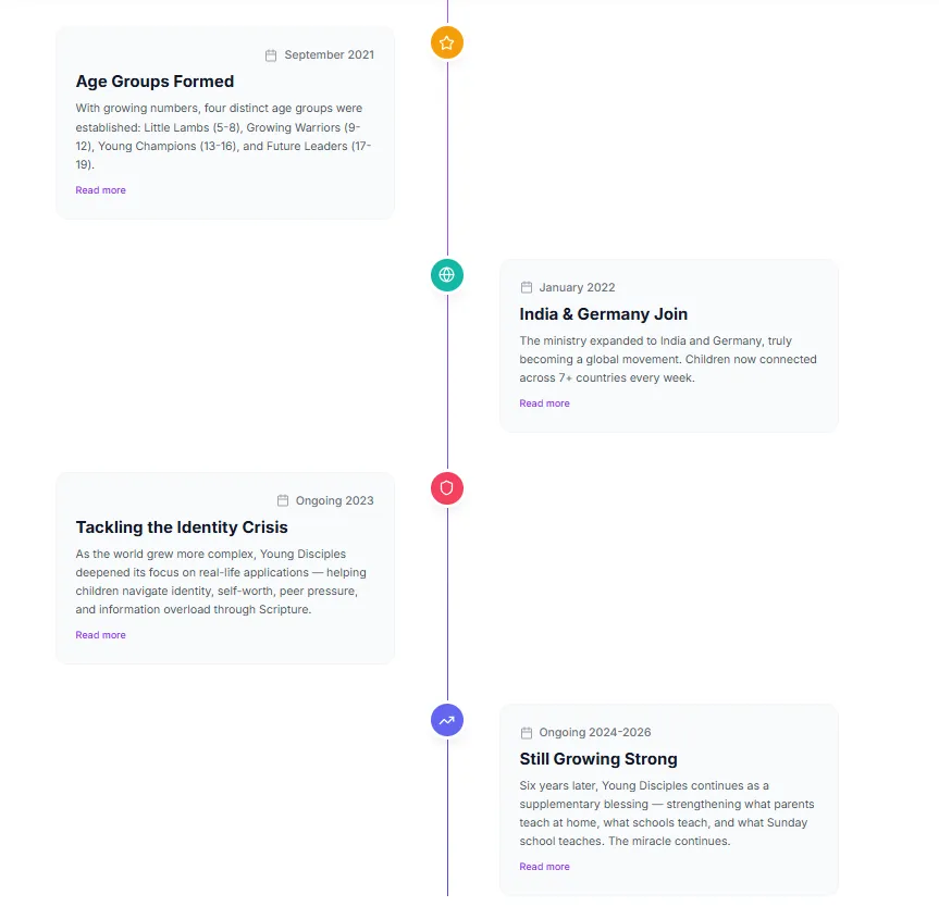 Yes, 100% free! There are absolutely no charges, fees, or hidden costs. Ever. Young Disciples has been completely free since its founding in April 2020 and will always remain so. We believe every child deserves access to quality faith-based education regardless of their family's financial situation.